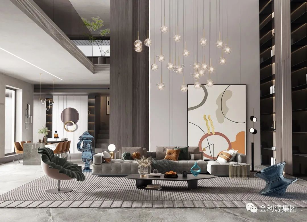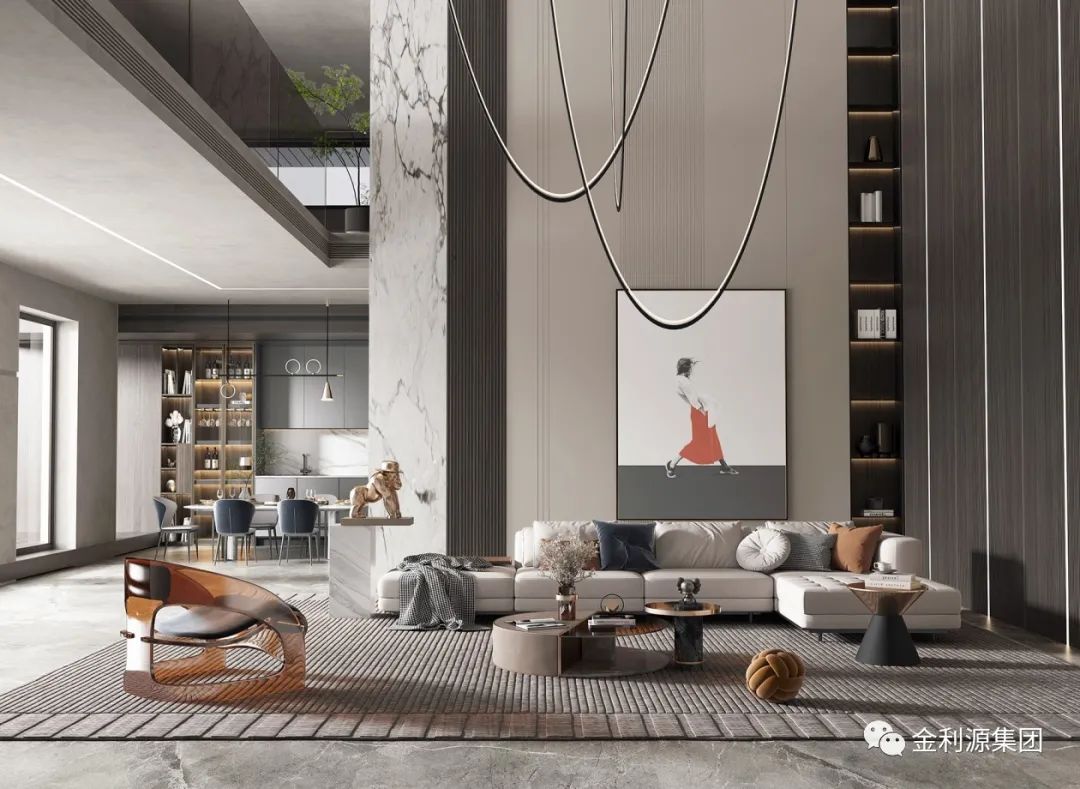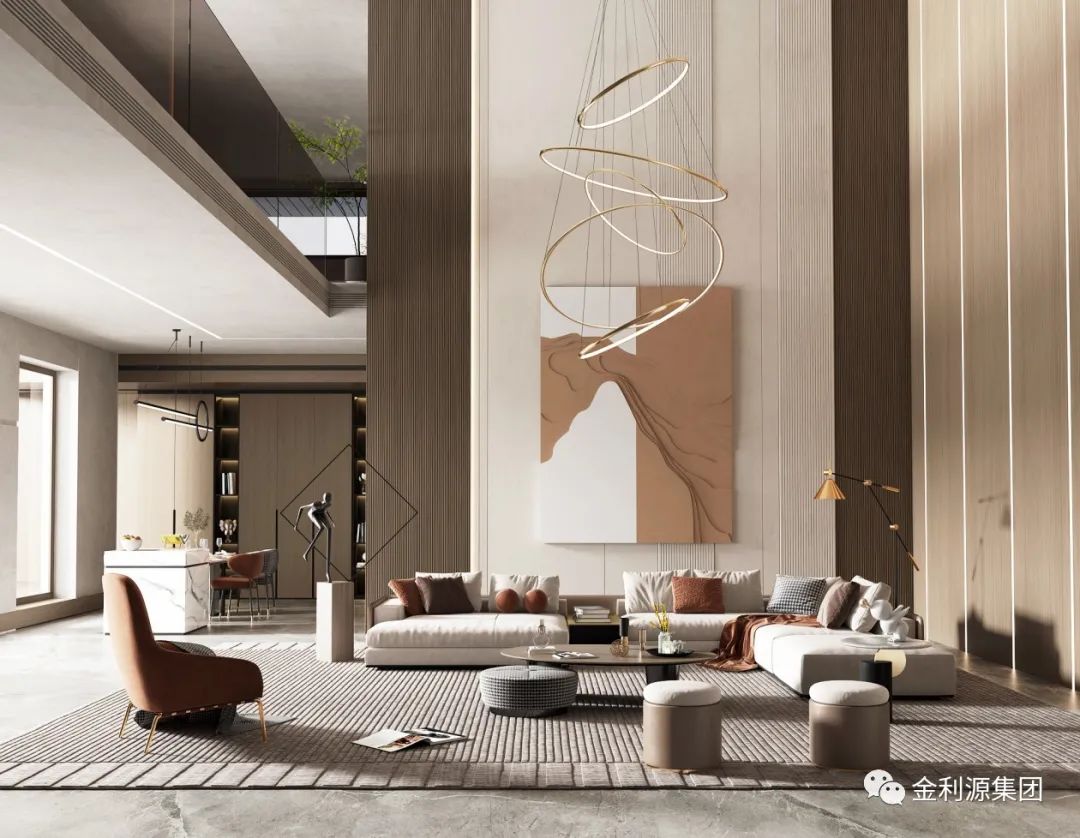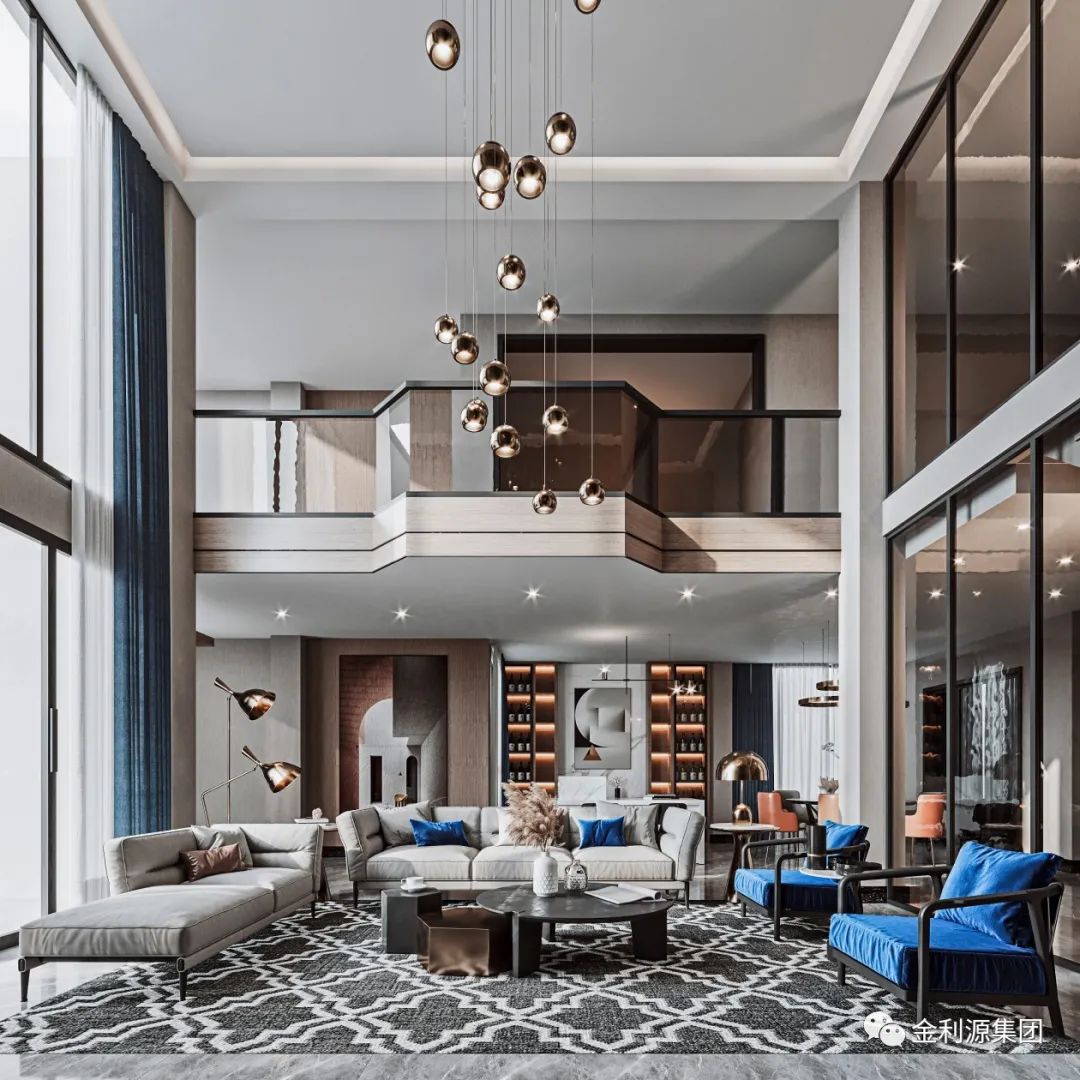 不論是復(fù)式躍層還是別墅聯(lián)排,擁有一個(gè)帶有挑空的客廳仿佛成為了大宅標(biāo)配。在這類型戶型中客廳選擇挑空的設(shè)計(jì),能夠使視覺(jué)上更加的開(kāi)闊,使人在精神上感覺(jué)到舒緩、放松,有效地釋放壓力。