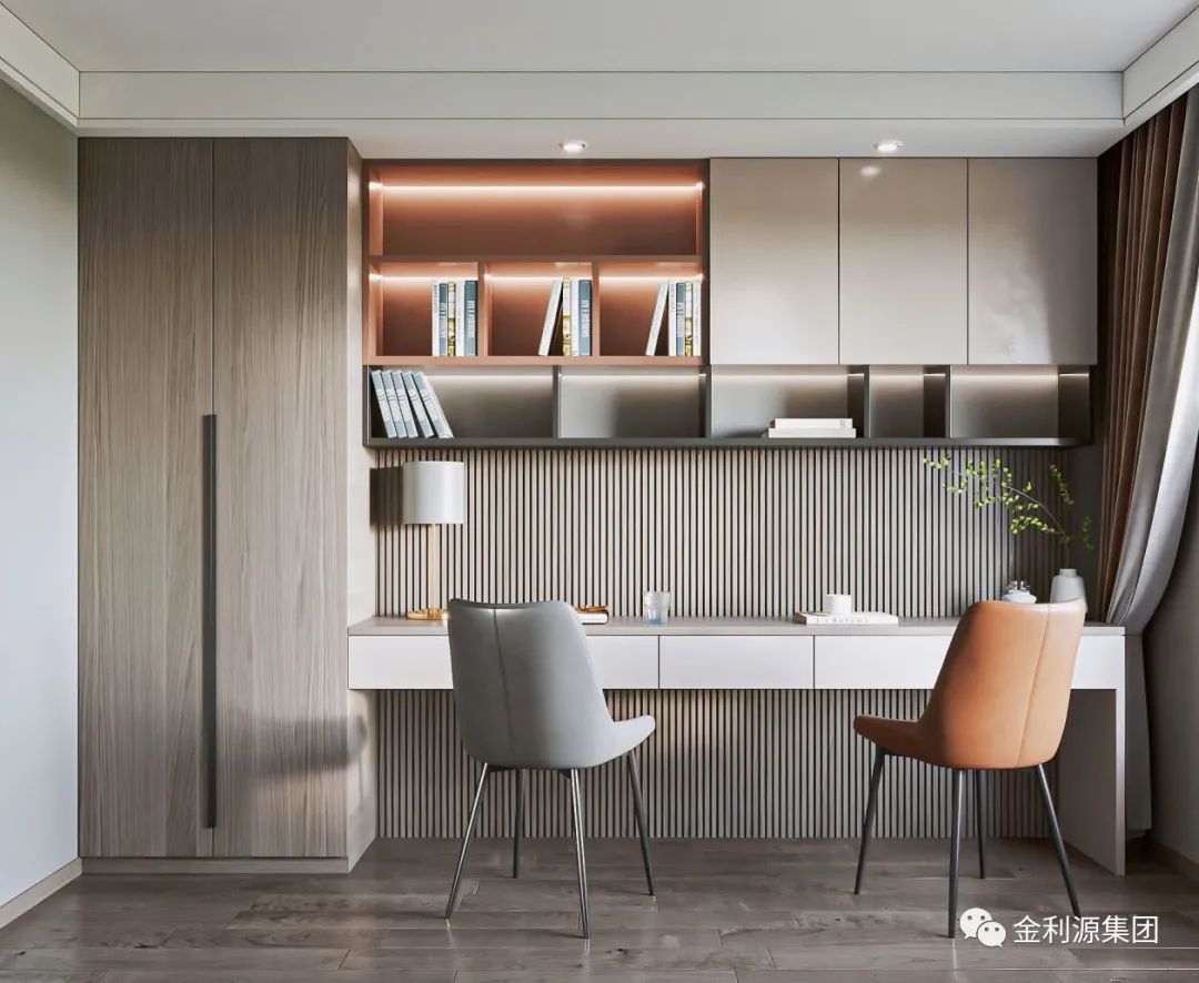 個(gè)性定制之中,為更大地利用空間,很多家庭會(huì)采用內(nèi)嵌書(shū)桌的設(shè)計(jì)。這類(lèi)設(shè)計(jì)定制性強(qiáng),給人以完美協(xié)調(diào)的整體感。