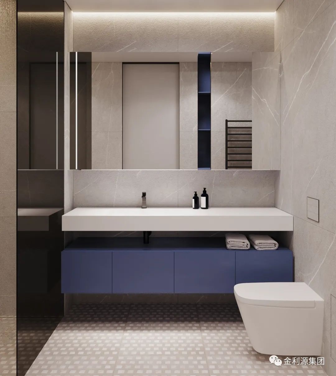 讓空間變得超寬敞,這就是鏡面柜的作用之一,因為鏡子可以反光,特別是無把手的鏡面柜,乍一看一點都看不出是柜子,鏡子里反射出來的地面,將衛(wèi)生間地面進(jìn)行了延伸。從視覺上拉伸了衛(wèi)生間空間。