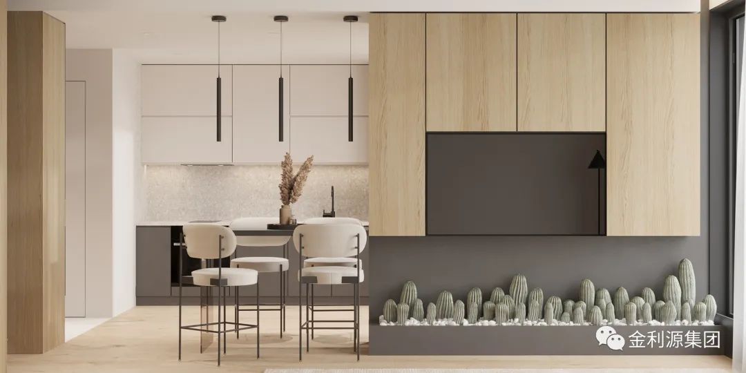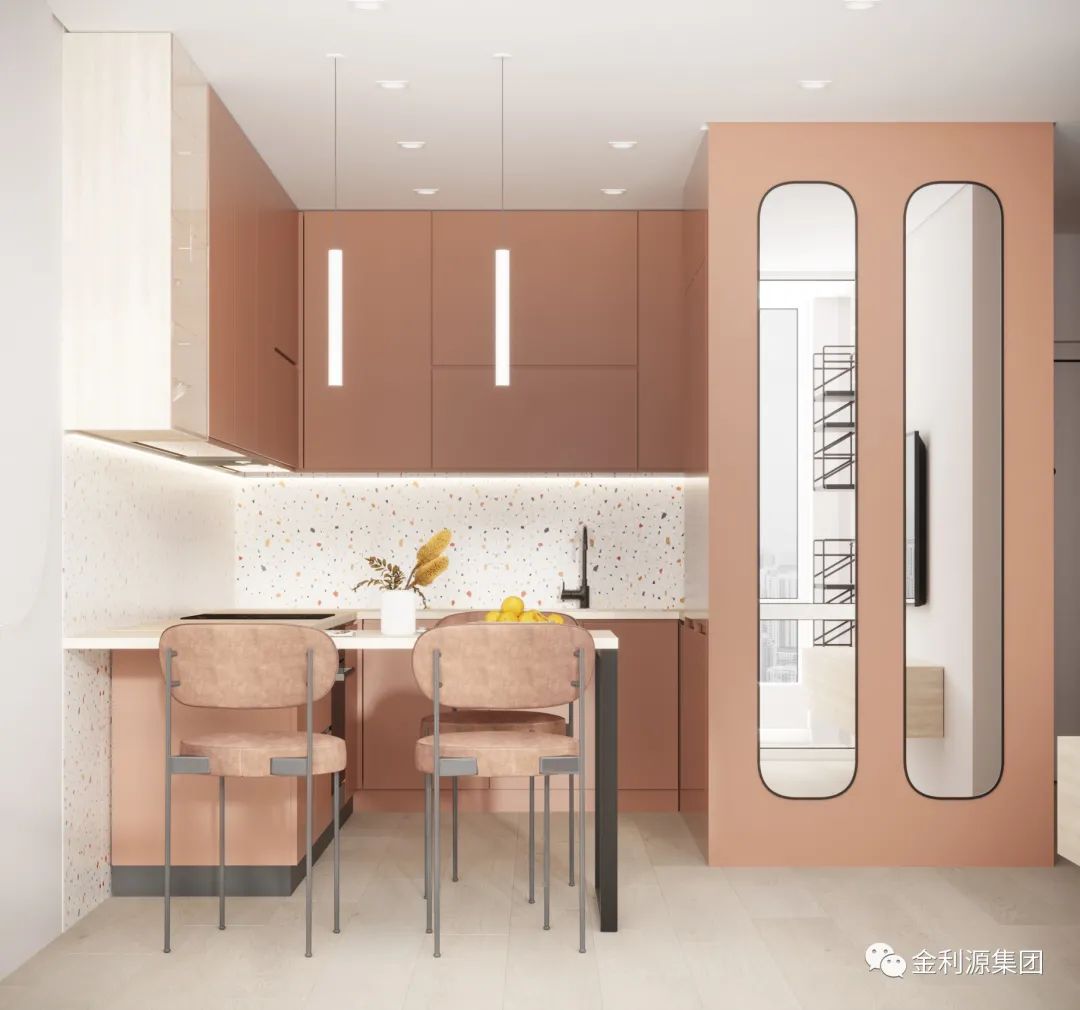 在這種無法輕易更改位置或變動的情況下,完全可以通過更換柜門面板來增加柜體的現(xiàn)代感,讓空間更有趣味性。