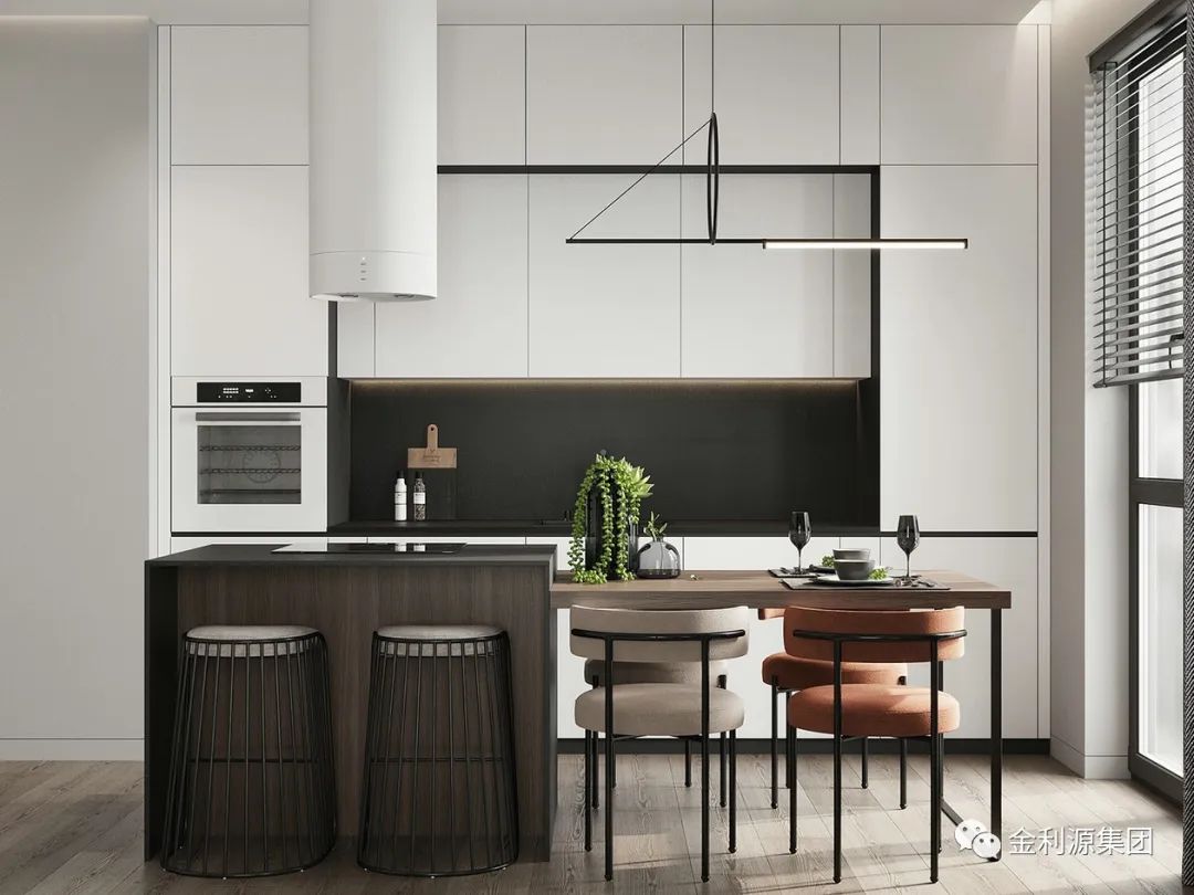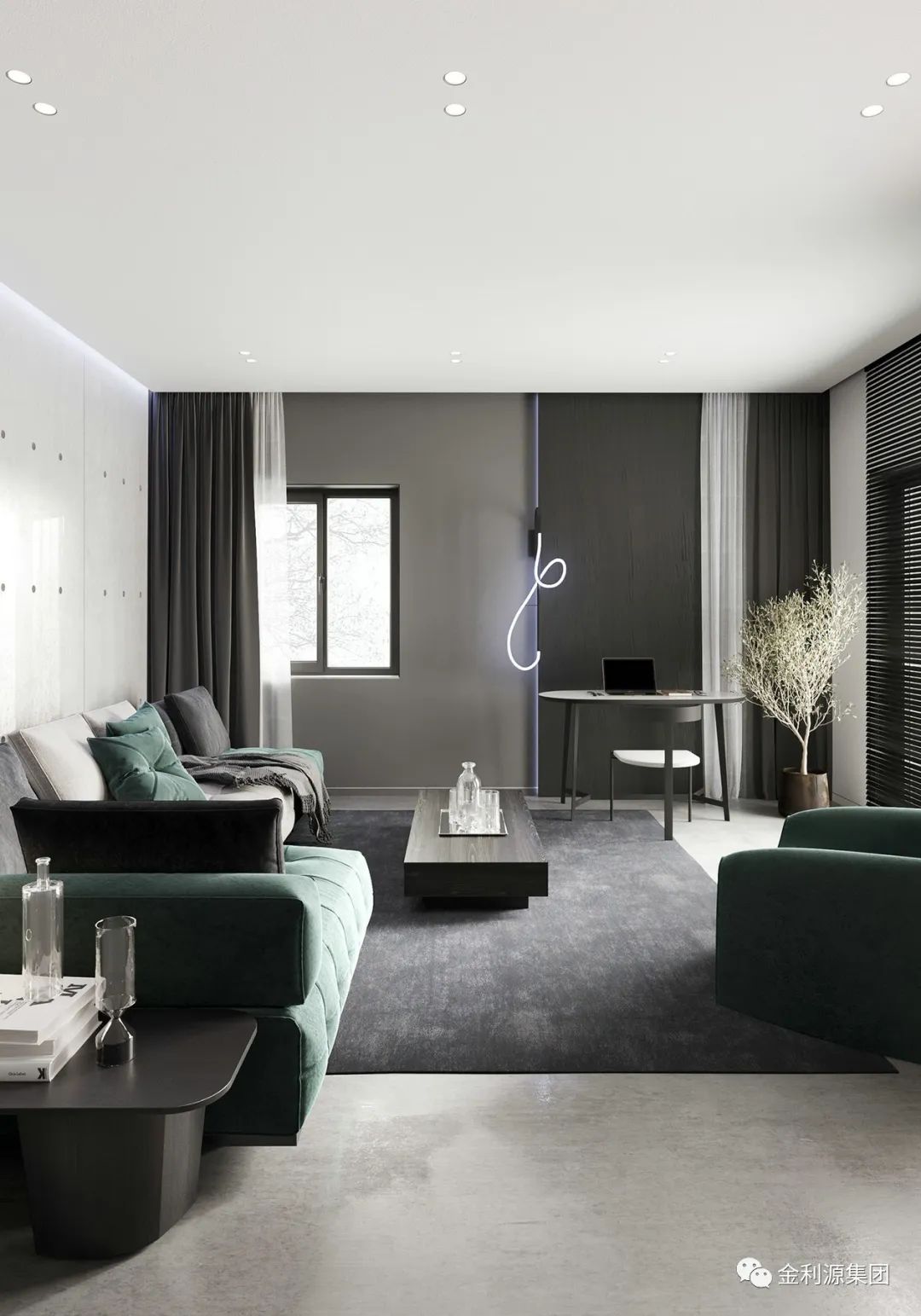 總結現(xiàn)代簡約的色彩定律,只要記住一個公式就夠了:黑+白+灰+點綴色。精致優(yōu)雅的點綴色不僅能突出高級感,又不會破壞整體的簡約效果。