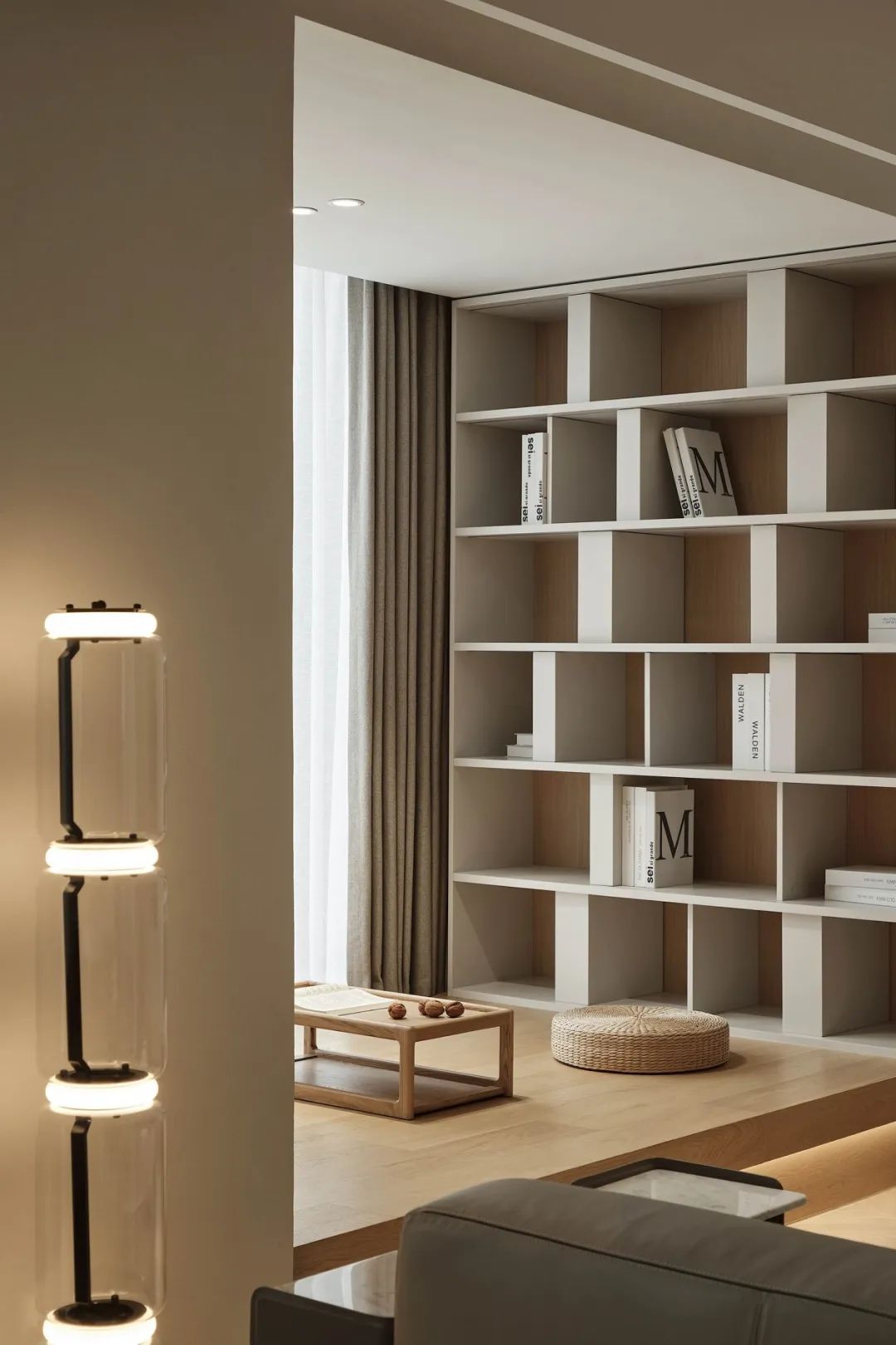 構(gòu)筑地臺和定制書柜,在錯落的起伏間,烘托出書香氣息,于寬窄的結(jié)合之中,展現(xiàn)出設(shè)計意趣。