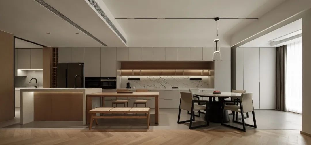張弛有力,指明主次,以理性元素平衡側(cè)鄰場域的簡約風(fēng)格,借圓的象征意義糅合現(xiàn)代主義的情調(diào),掀起對精致生活的無限期待。