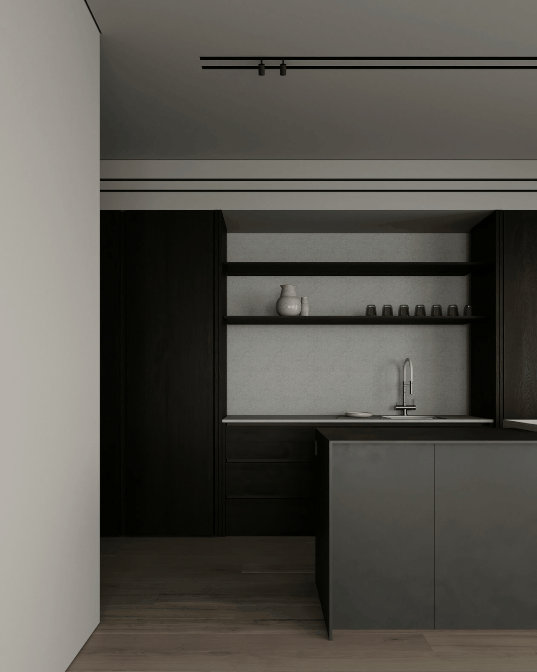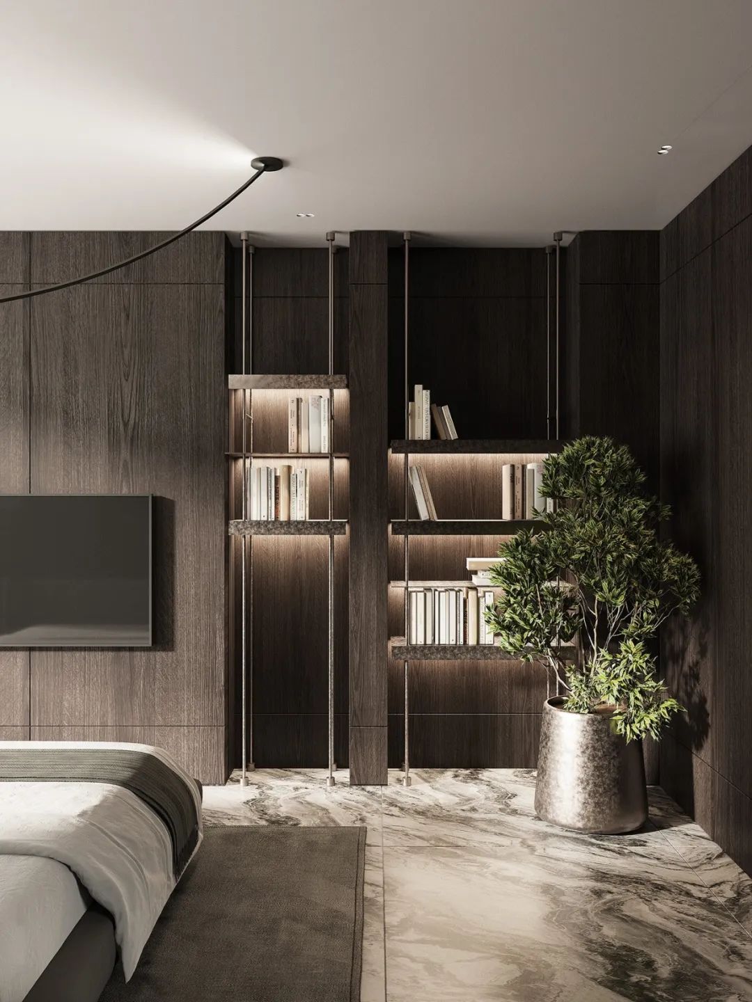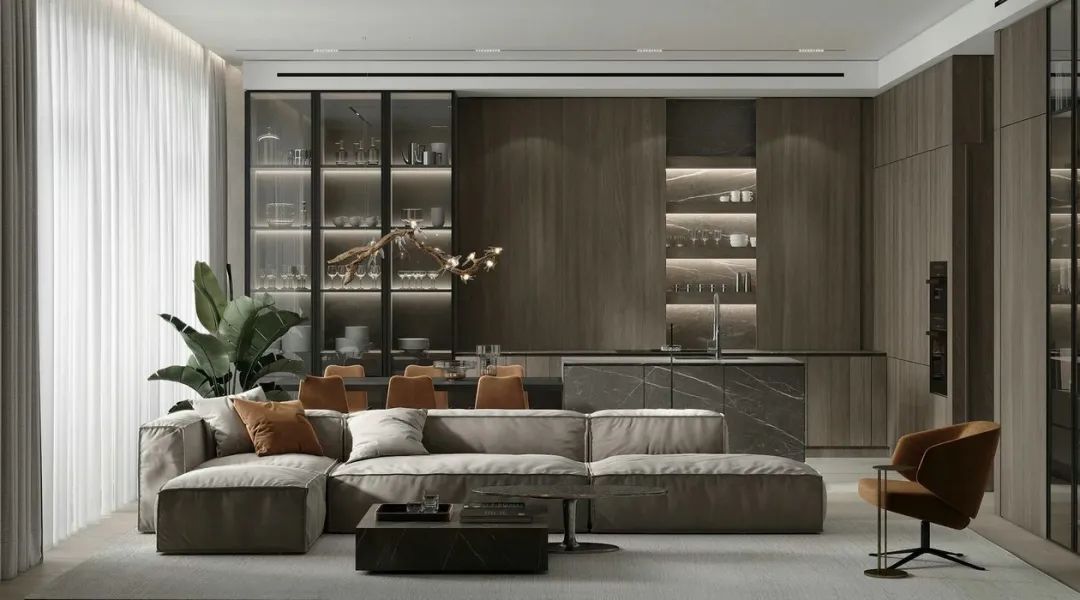 墻柜一體的空間,大氣得體。讓空間在冷靜中更見(jiàn)知性,閱讀、學(xué)習(xí)、居家更顯愉悅。