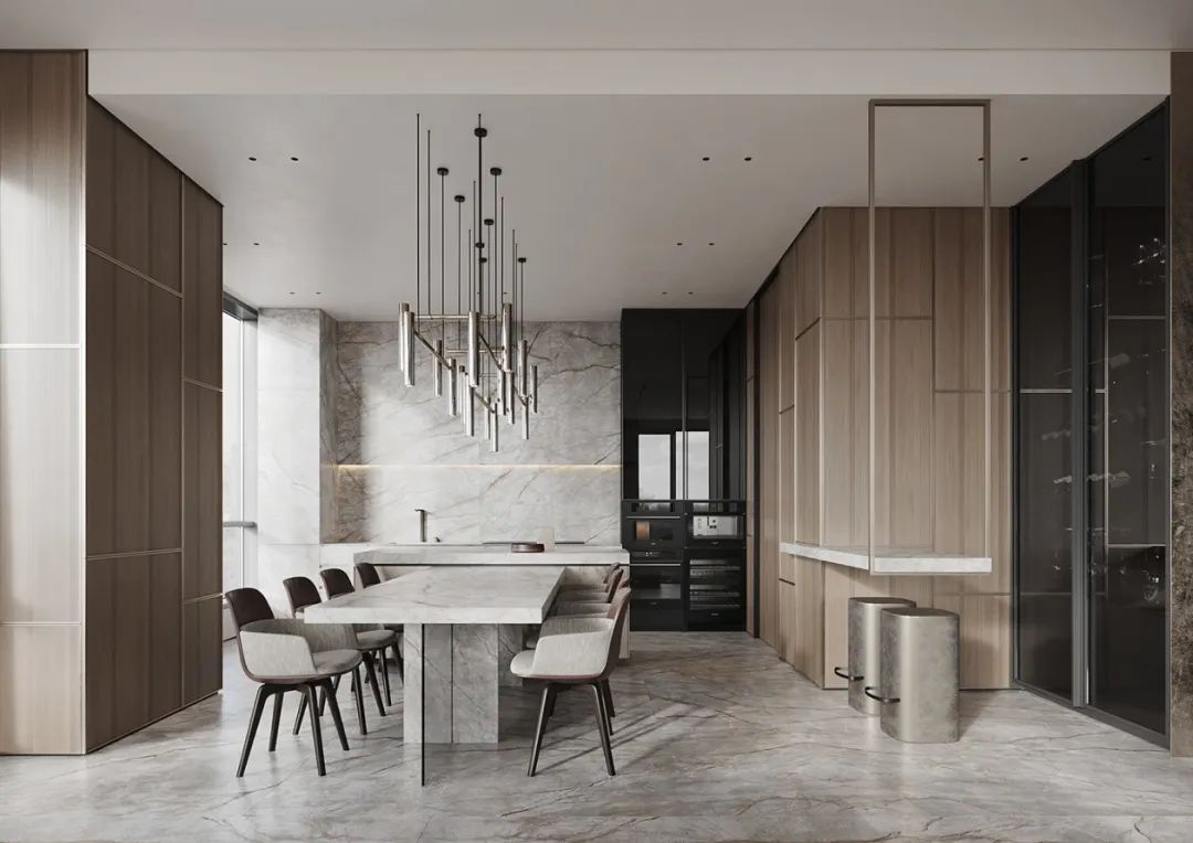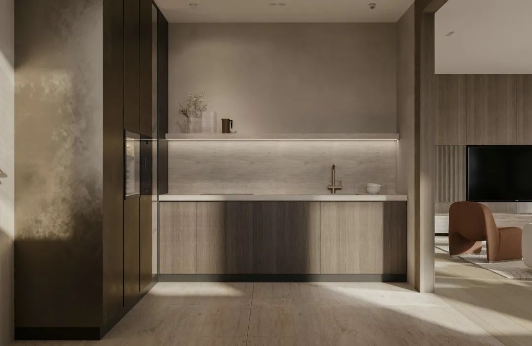 集多種用途于一身的餐廚空間,在TOP胡桃花色的肌理映襯下,空間縱深感倍增,怡然自得。