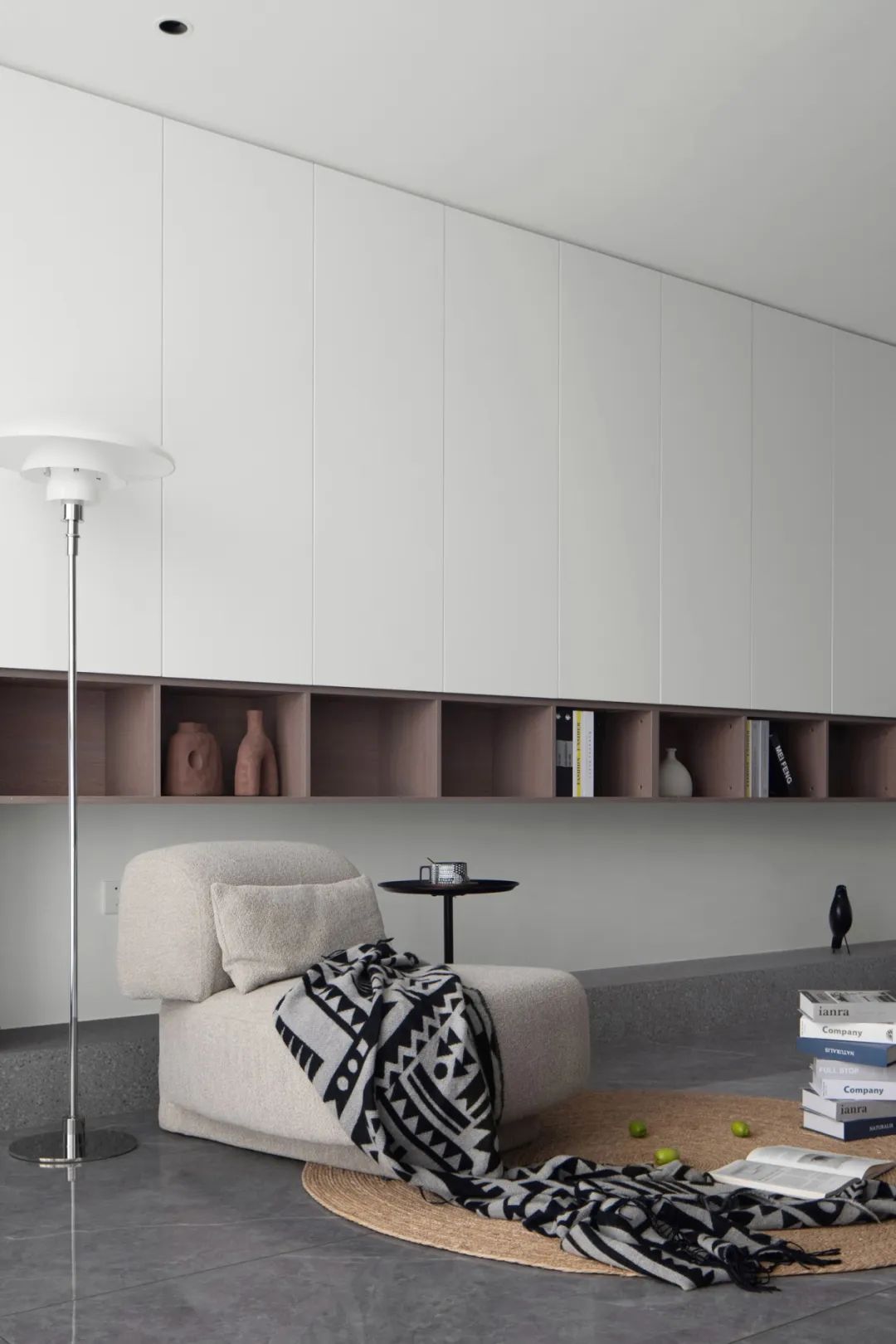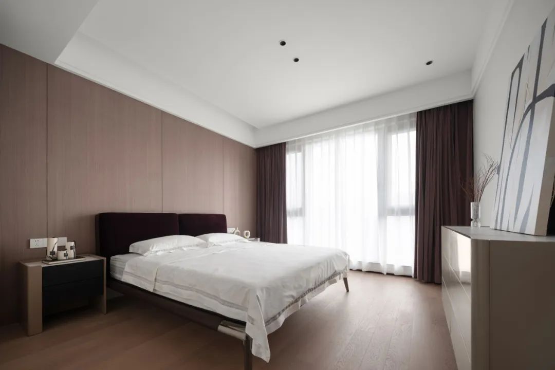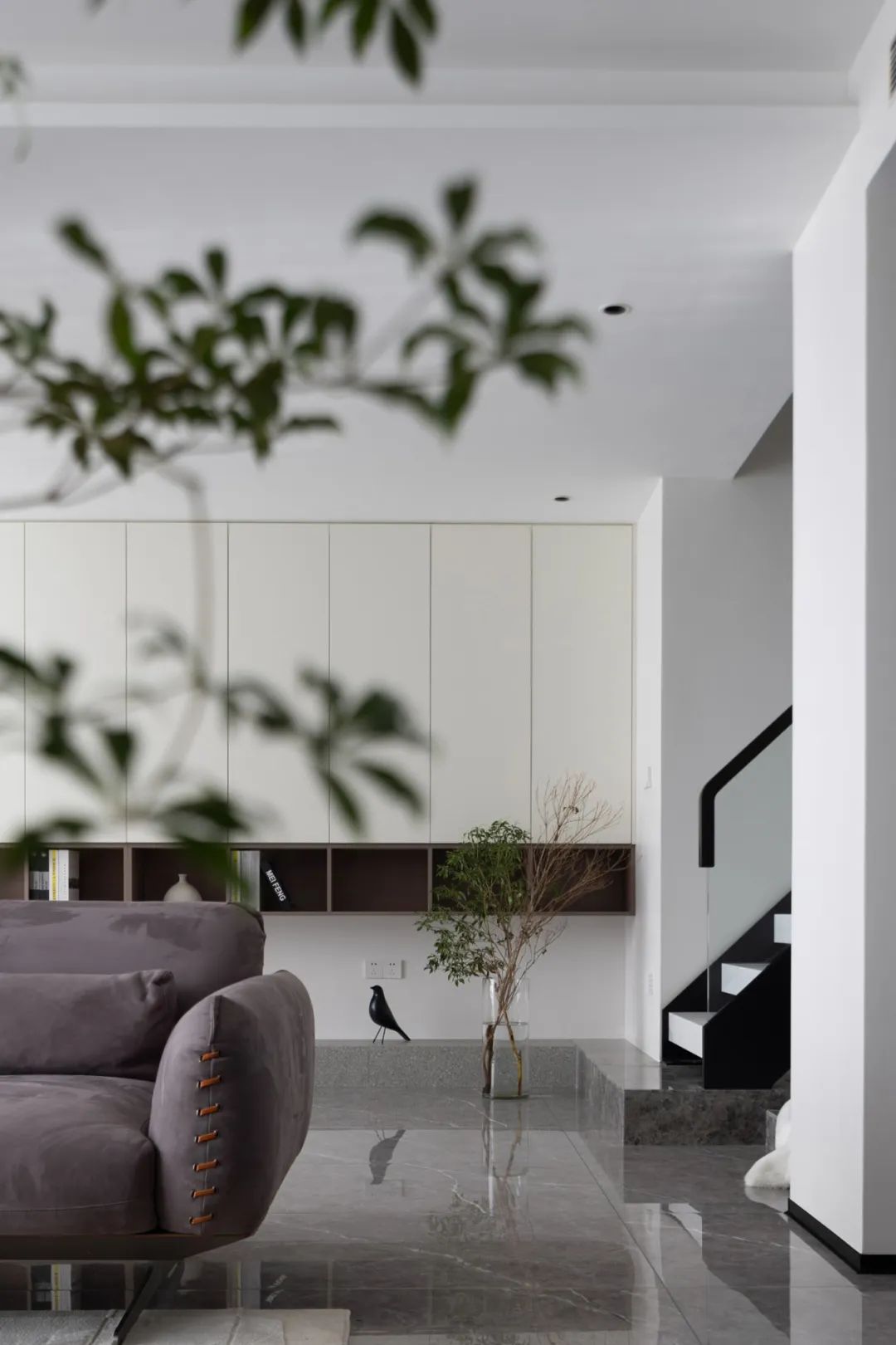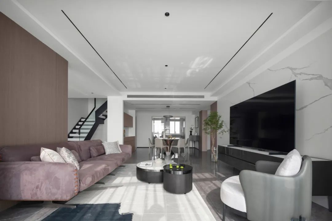 極盡克制地使用點(diǎn)光源與綠植點(diǎn)綴其間,以設(shè)計(jì)語(yǔ)言的多樣性展現(xiàn)出業(yè)主獨(dú)特的生活美學(xué)。