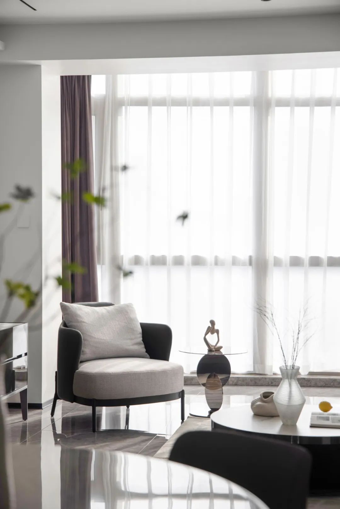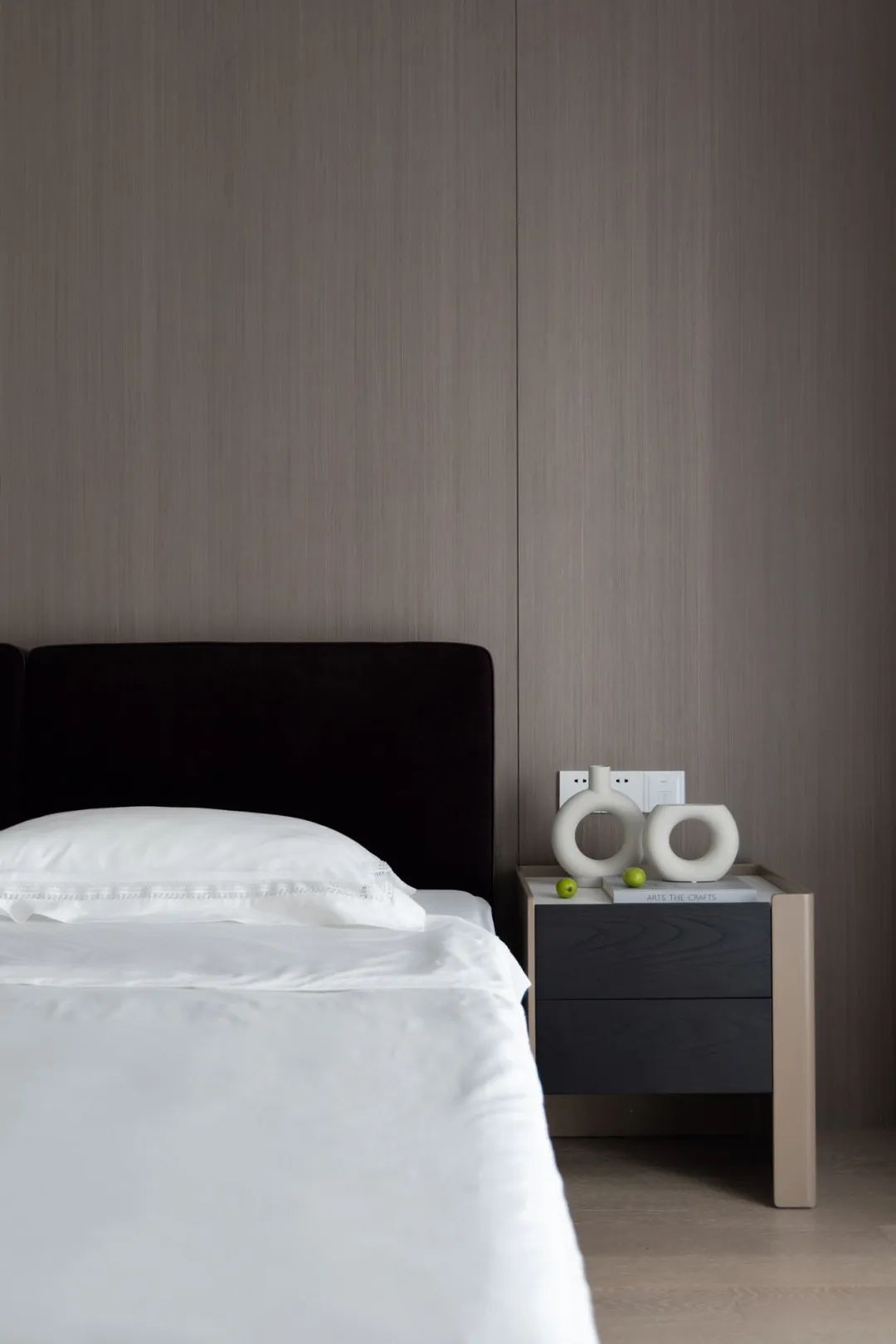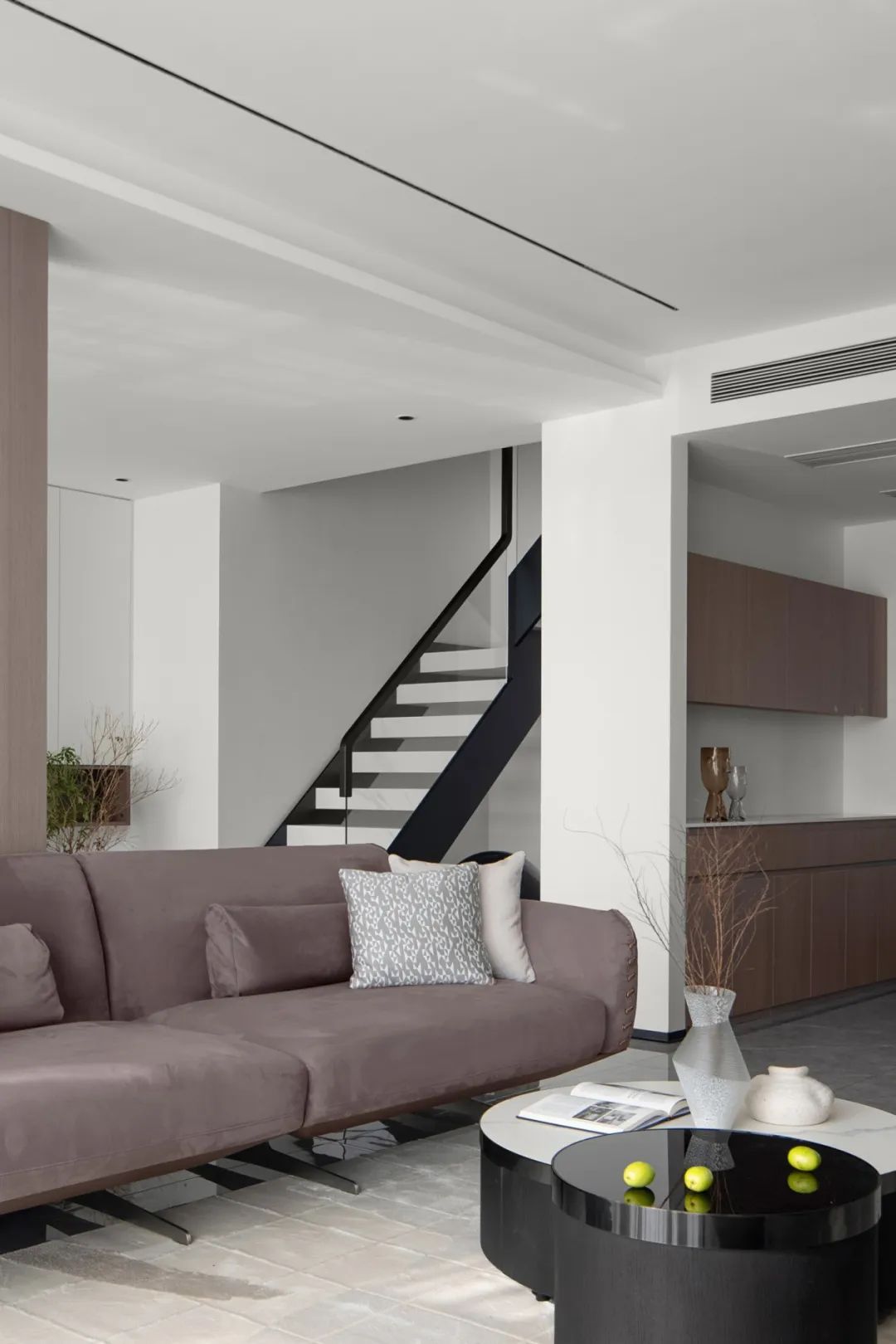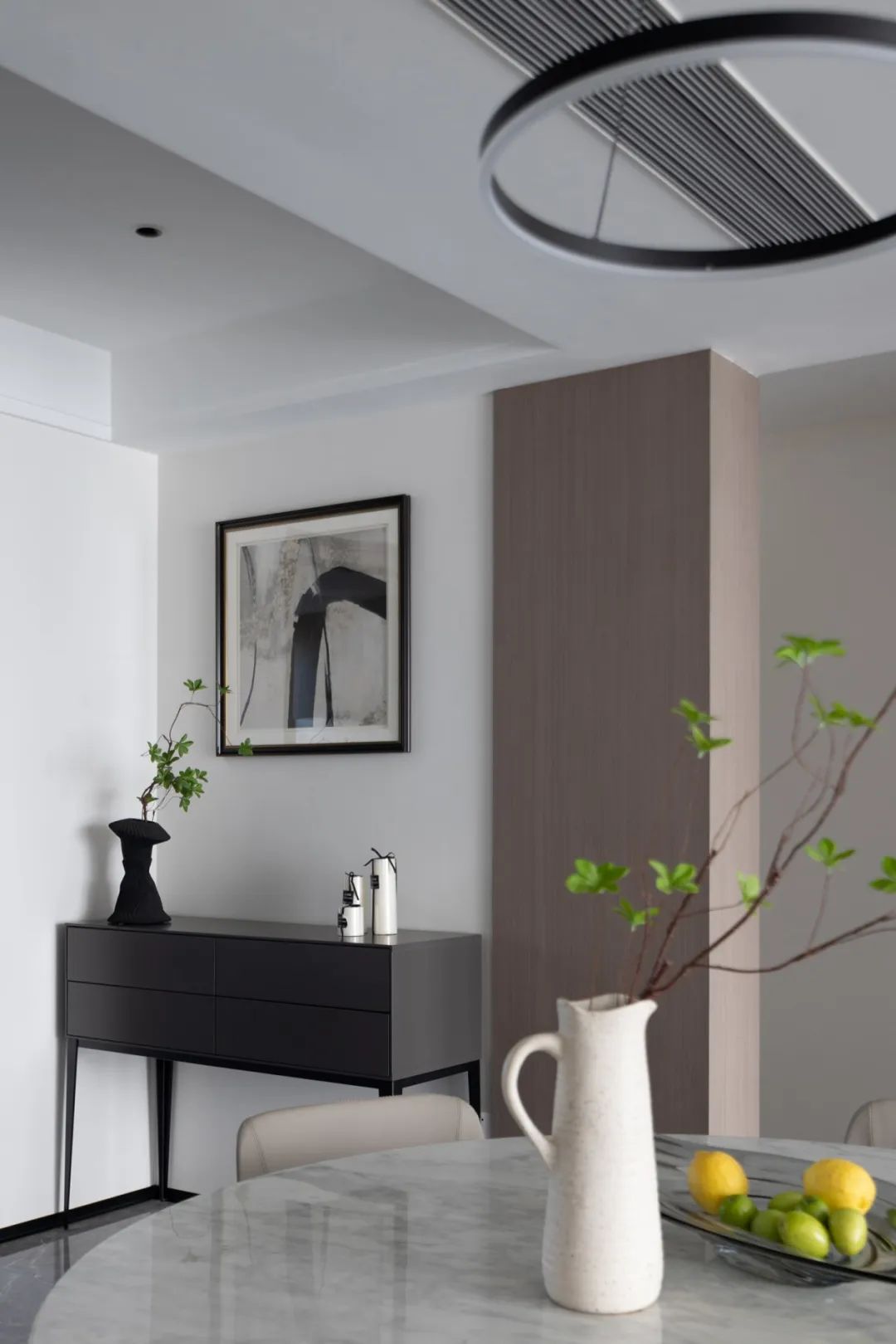 極盡克制地使用點(diǎn)光源與綠植點(diǎn)綴其間,以設(shè)計(jì)語(yǔ)言的多樣性展現(xiàn)出業(yè)主獨(dú)特的生活美學(xué)。