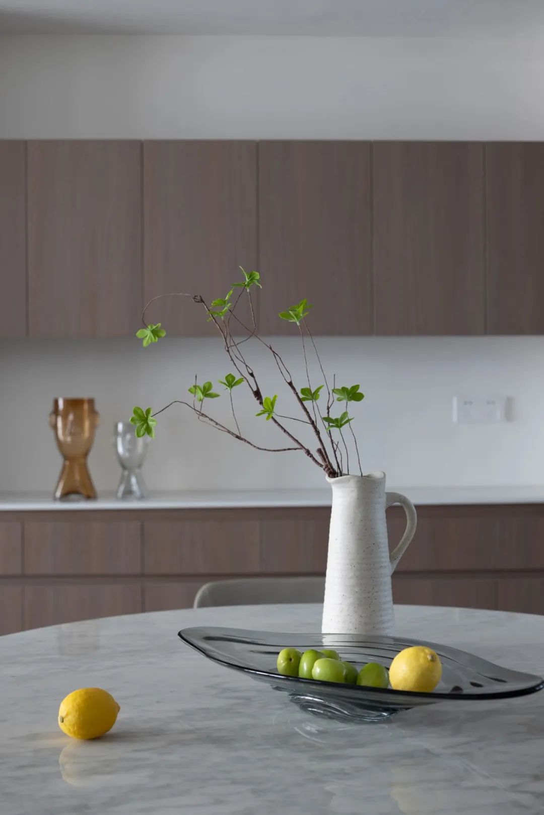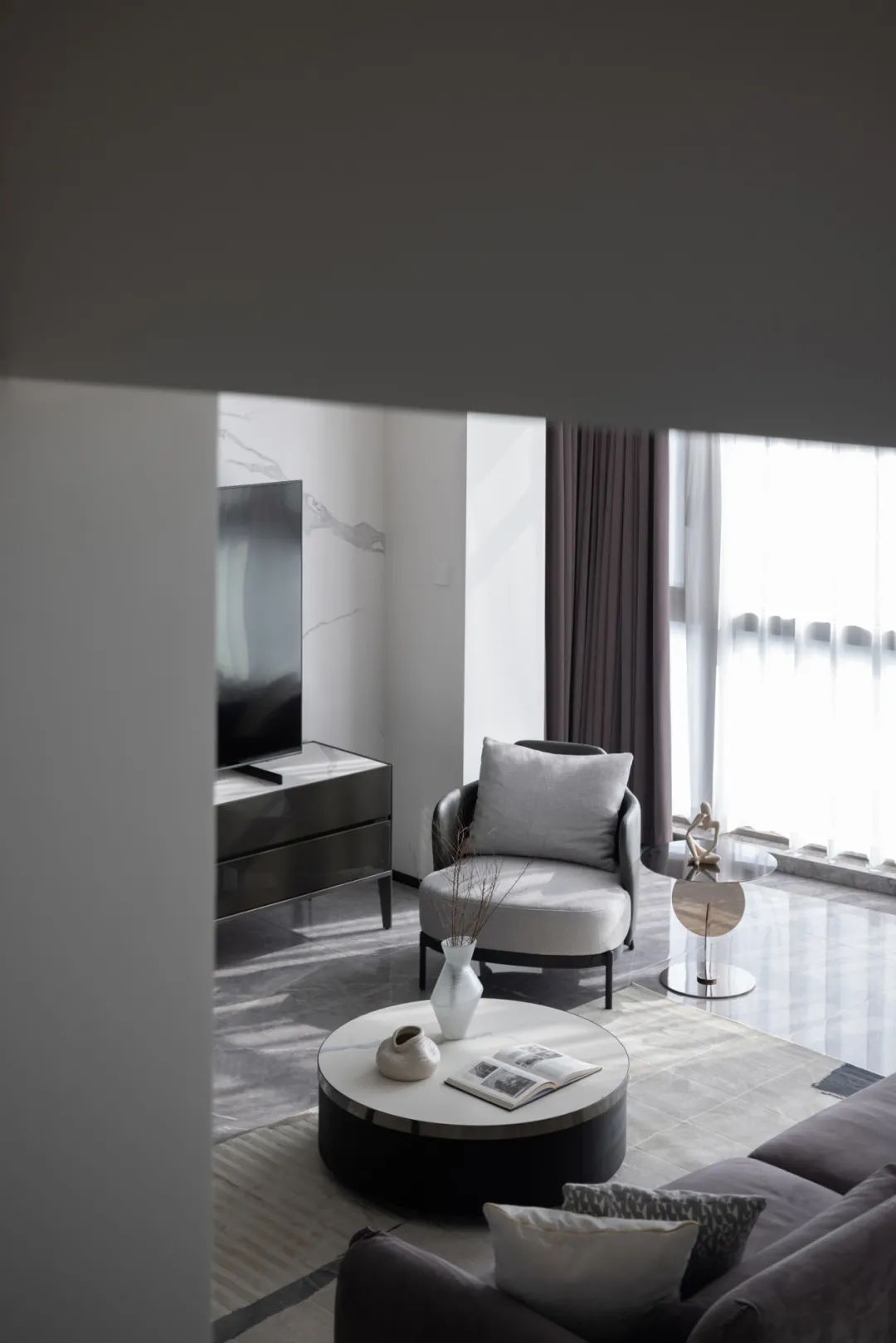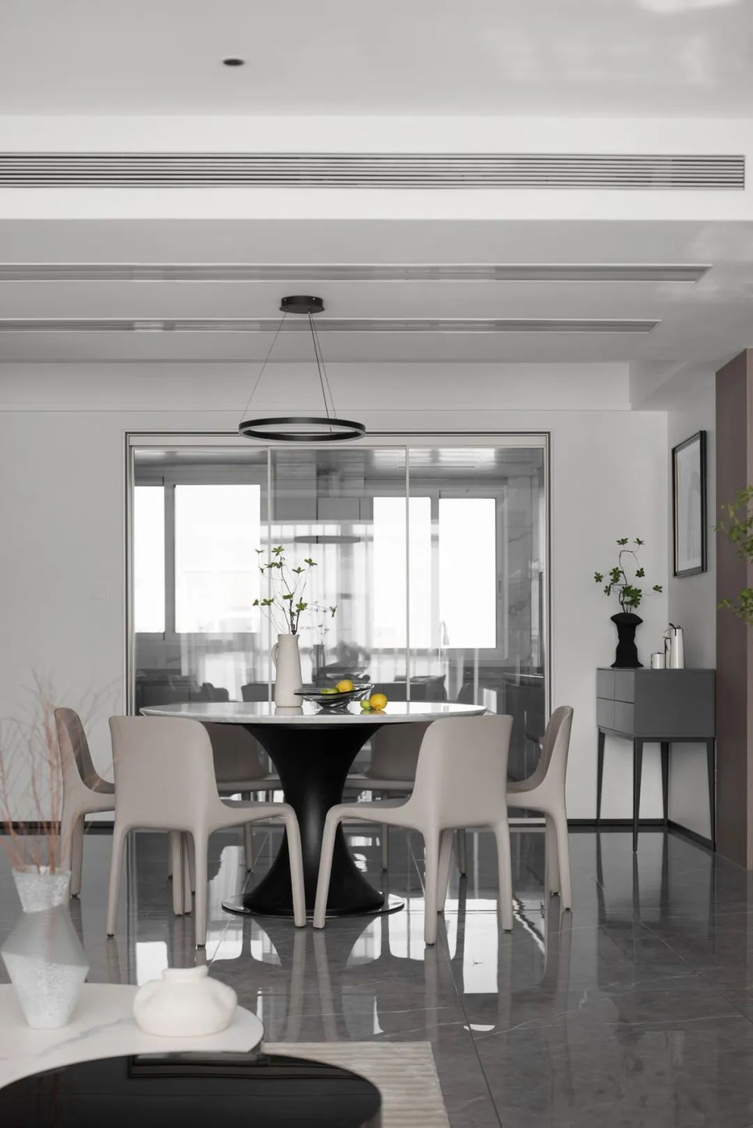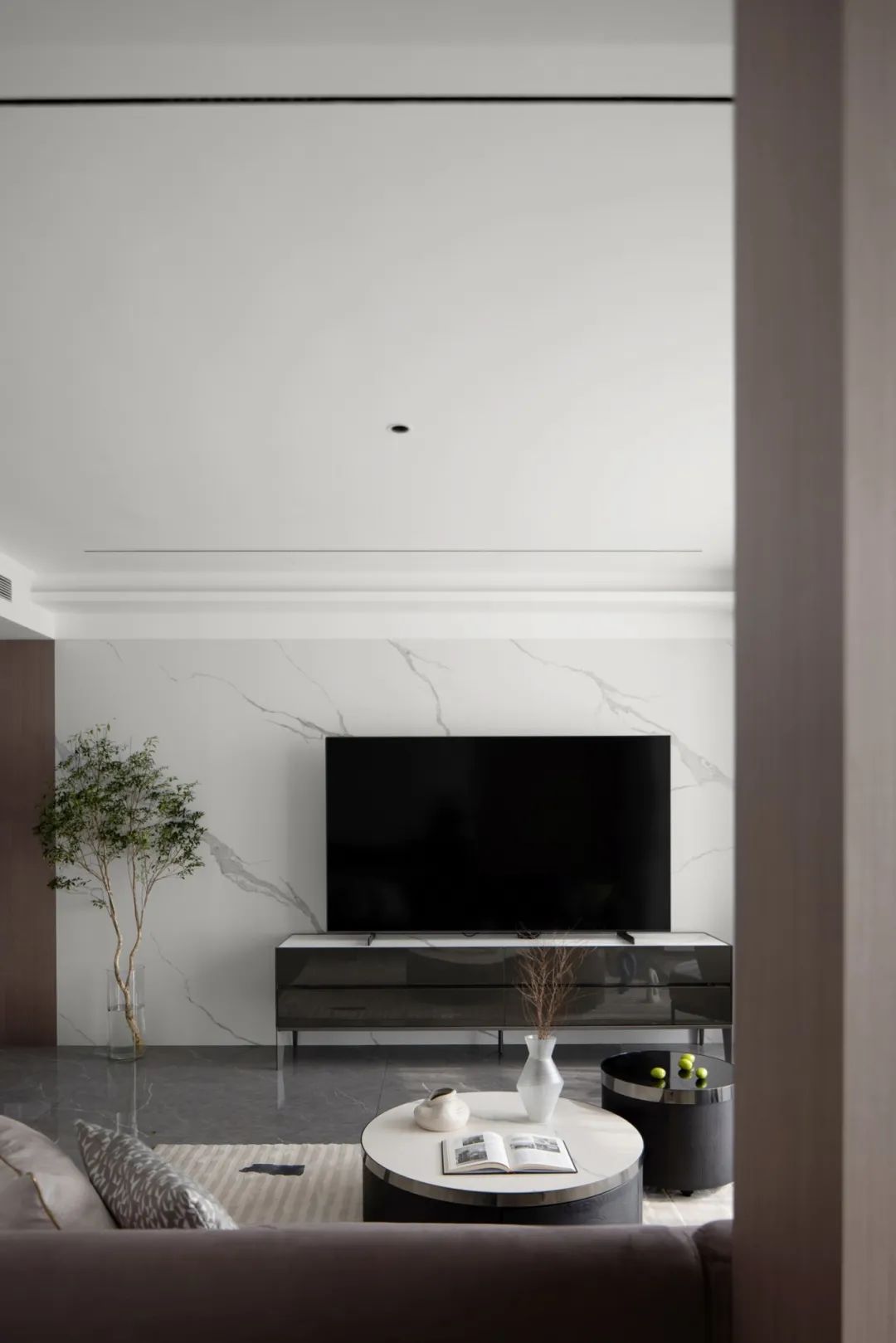 極盡克制地使用點(diǎn)光源與綠植點(diǎn)綴其間,以設(shè)計(jì)語(yǔ)言的多樣性展現(xiàn)出業(yè)主獨(dú)特的生活美學(xué)。