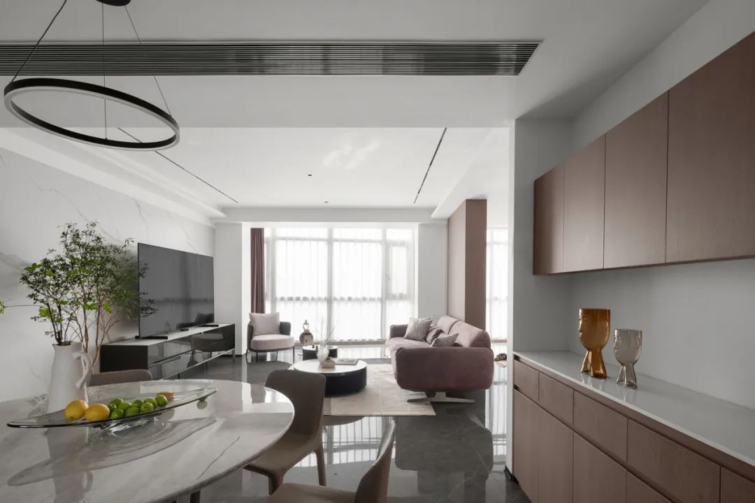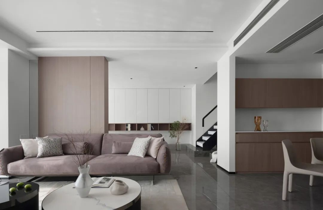 空間并非是固定、局限、封閉的,更多時(shí)候各空間可以相互交流,柔性的空間隔斷給予了空間更多的互動(dòng)與呼吸,任視線與空氣自由地流動(dòng)。