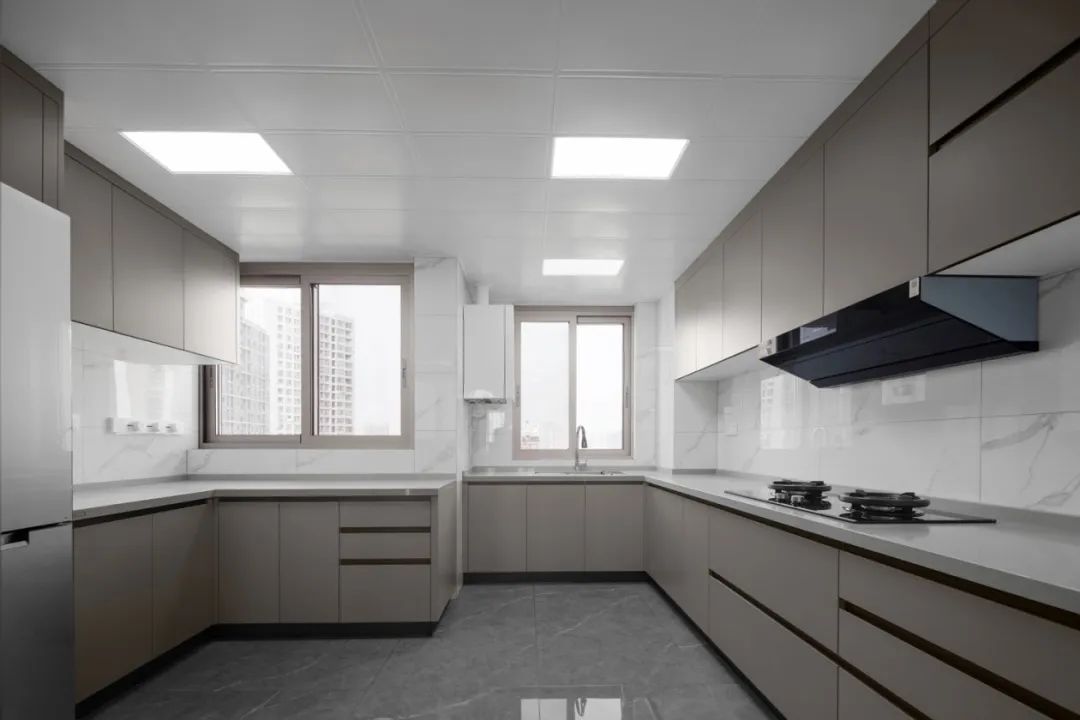 封閉式廚房,用金利源板材定制整體櫥柜,和諧一體。大面積的咖色加以黑色線條點(diǎn)綴,簡(jiǎn)約且與房屋的整體風(fēng)格相呼應(yīng)。裝修用什么板材好—金利源板材