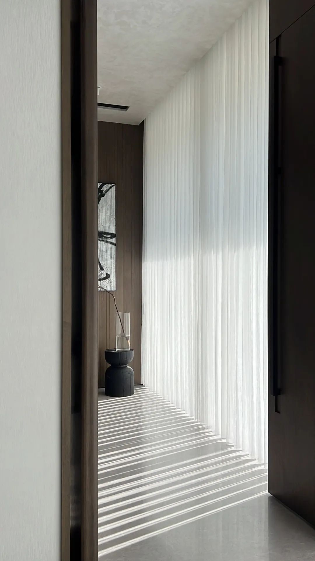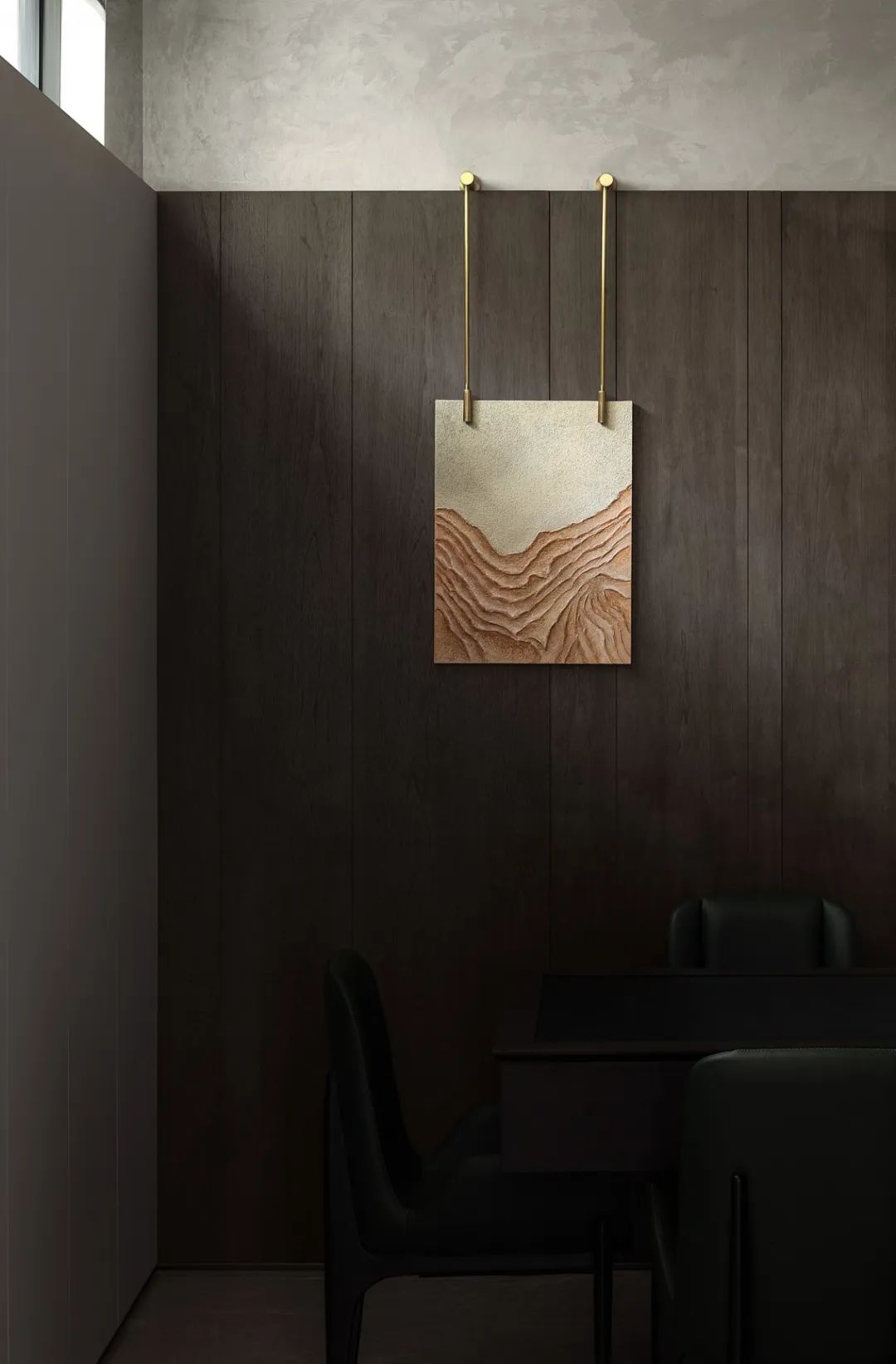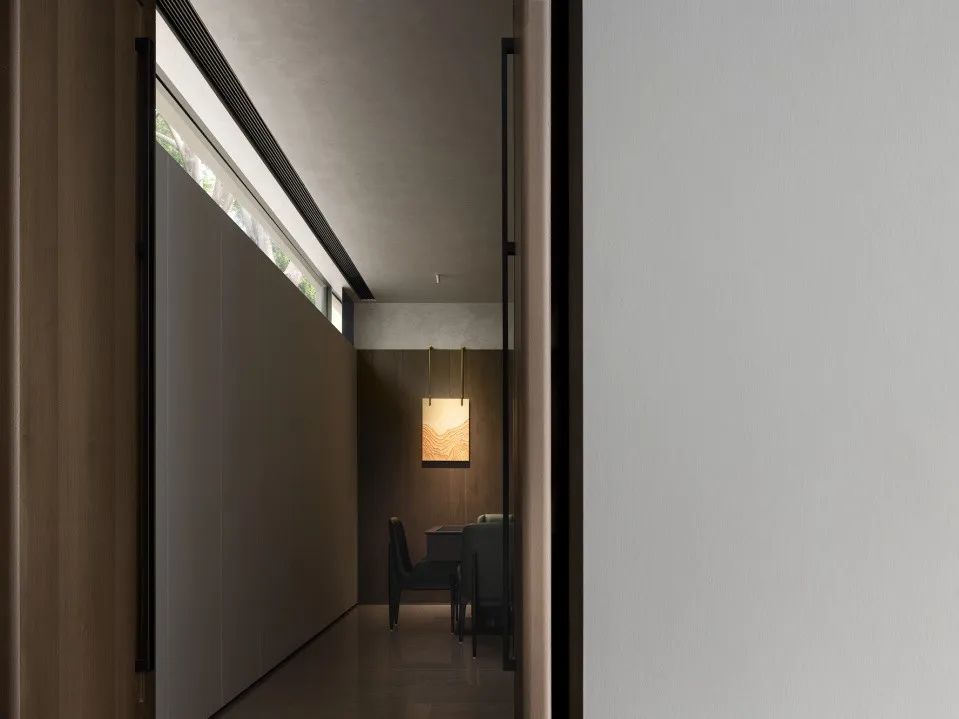 木柜之上與天花之間嵌入一道縫隙,上下嵌合,濃蔭沉淀下來(lái)的光景,以一身綠色曠野的氣息,漫入室內(nèi),環(huán)室扶疏,靜謐則可望、可達(dá)。