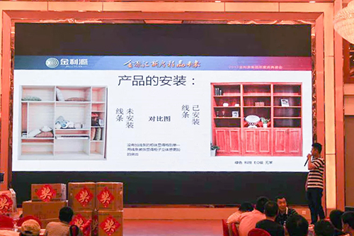 全國(guó)連鎖贛北區(qū)域負(fù)責(zé)人姚忠良全面介紹了公司綠色建材產(chǎn)品體系,以及如何引導(dǎo)綠色產(chǎn)品市場(chǎng)消費(fèi)的提升,加強(qiáng)金利源品牌形象渠道建設(shè)等實(shí)質(zhì)性內(nèi)容。分析金利源建材產(chǎn)品在市場(chǎng)上的優(yōu)勢(shì)和產(chǎn)品特點(diǎn),重點(diǎn)講解了最新綠色科技健康產(chǎn)品:680凈醛除菌生態(tài)板、無(wú)醛添加金鉆生態(tài)板、負(fù)離子金剛面生態(tài)板、私屬定制平開(kāi)門(mén)、移門(mén)、線型類(lèi)等產(chǎn)品。
