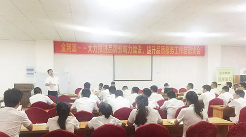 2018年7月2日金利源品牌在總部會議室召開“圍繞品牌建設(shè),提升品質(zhì)服務(wù)”專題培訓(xùn)。匯集了集團公司全國連鎖市場部、企劃部、銷售內(nèi)勤部、采購部、售后服務(wù)部、品管部等全體人員。