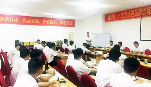 此次專題培訓(xùn)人員以如何推進金利源品牌渠道建設(shè)為核心內(nèi)容,從產(chǎn)品生產(chǎn)質(zhì)量,配套體系輔料產(chǎn)品,市場開拓工作、品牌形象渠道建設(shè)、全程品質(zhì)服務(wù)工作以及如何迎接定制化時代的到來等方面進行了深入剖析及重點講解。