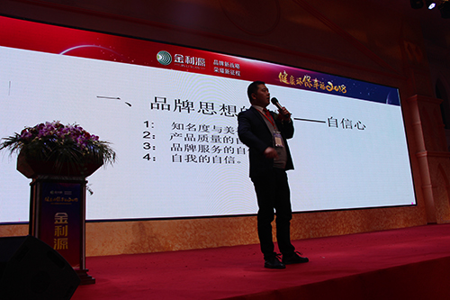 金利源建材集團公司蕭山品牌運營中心負責人、市場部總監(jiān)羅明致辭,他就如何進一步完善日常工作細節(jié),如何進一步引導客戶贏在終端的產品定位,如何進一步提高持續(xù)增值的企管服務等方向進行分享。