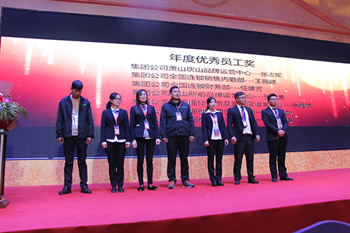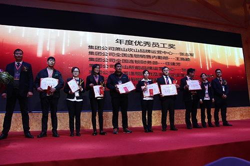 2017年度優(yōu)秀員工獎:蕭山坎山品牌運營中心張志軍、全國連鎖銷售內勤部王施穎、全國連鎖財務部任建芳、蕭山所前品牌運營中心張志勇、全國連鎖門市與直營中心余艷萍、全國連鎖江西生產基地朱響武、全國連鎖山東生產基地繆春洋